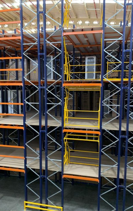 Este proyecto de almacenamiento industrial consiste en una estantería tipo entrepiso de diez (10) metros de altura, la cual cuenta con más de 3.000 vigas con capacidad de 2.000 kilos, cuatro (4) niveles de almacenaje, ocho (8) escaleras y esclusas, y trampas de carga.