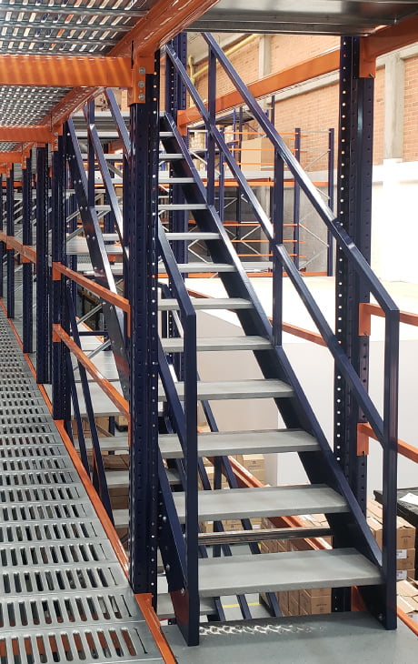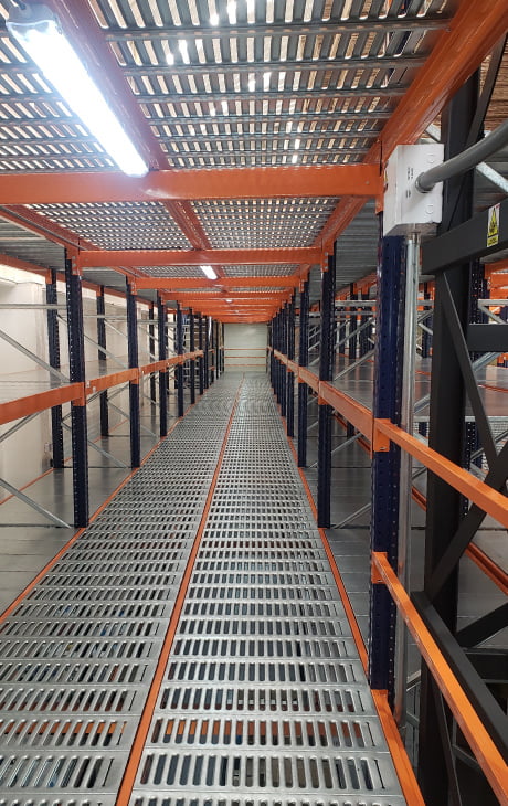 La Estantería Entrepiso para picking consiste en niveles de almacenaje que permiten el acceso manual al producto, permitiendo el aprovechamiento en altura de la bodega logística, por medio de niveles de piso, pasillos, escaleras y ascensores.