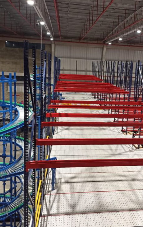 ¿Cómo lo hicimos? Diseñamos y fabricamos extensiones para ensamblar a los marcos anteriormente instalados. Gracias a lo anterior, se instaló un nuevo entrepiso con longitud de 2.500 metros, posicionando nuevas vigas y soportes de entrepaños.